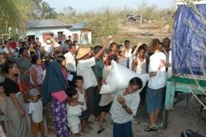 À l'arrivée de MSF dans la région du delta de l'Irrawady, 48 heures après le cyclone Nargis, de nombreuses personnes se trouvaient sans nourriture, sans toit, sans eau potable et sans soins médicaux. Le cyclone a dévasté beaucoup de maisons, détruit les cultures et causé la mort du bétail. De plus, la mousson a rendu les conditions de vie encore plus difficiles.
